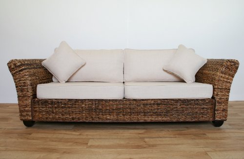 Our conservatory furniture has been designed and manufactured to the highest possible standards for Rattan Direct. This sofa has been hand-crafted using natural abaca (banana leaf) woven around a solid mahogany frame. We also have a wide range of wicker, rattan, cane conservatory furniture such as corner suites, armchairs, sofas and matching coffee and side tables. All of our cushions are designed to be removable and reversible, including FREE DuPontTM Teflon® fabric protection & two FREE scatter cushions! We use full foam extra-dense molded cold-cure seat cushions, which are 7.5 Inch thick, incredibly comfortable and designed to outlast most domestic seating. Rattan Direct Ltd - Direct to your conservatory. Call us on freephone 08000 14 14 26.