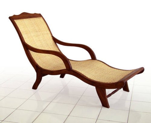 This elegant lounger is made of antique-finished teak and wicker. Contoured for comfort and relaxation with its curved arms and integral footrest.Dimensions: W 65 x H 97 x L 180 cm