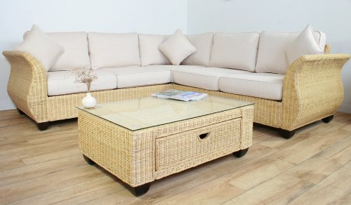 Our conservatory furniture has been designed and manufactured to the highest possible standards for Rattan Direct. This sofa has been hand-crafted using natural abaca (banana leaf) woven around a solid mahogany frame. We also have a wide range of wicker, rattan, cane conservatory furniture such as corner suites, armchairs, sofas and matching coffee and side tables. All of our cushions are designed to be removable and reversible, including FREE DuPontTM Teflon© fabric protection & two FREE scatter cushions! We use full foam extra-dense molded cold-cure seat cushions, which are 7.5 Inch thick, incredibly comfortable and designed to outlast most domestic seating. Rattan Direct Ltd - Direct to your conservatory. Call us on freephone 08000 14 14 26.